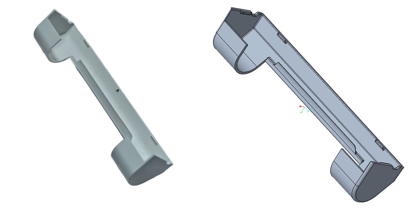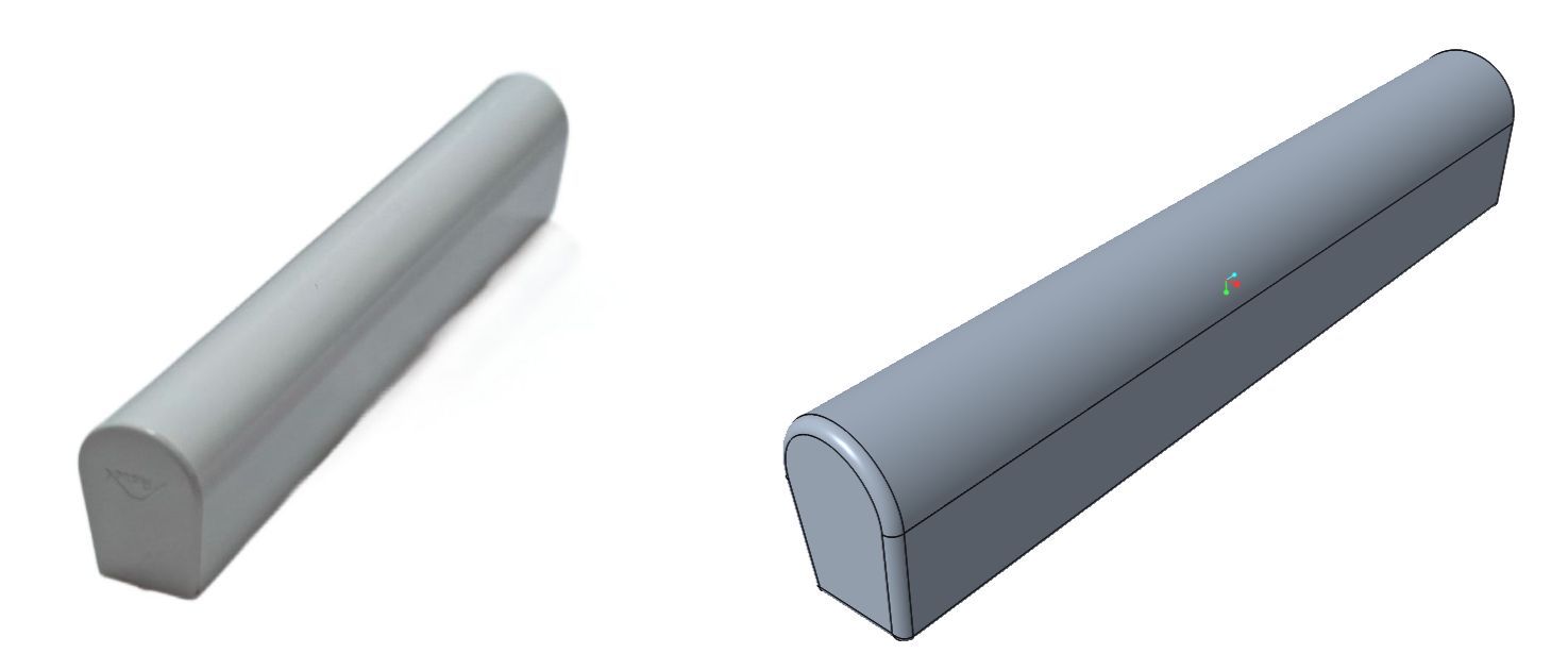 Tworzenie modelu cyfrowego: wysokoprecyzyjne skanowanie 3D próbki oraz budowa bryłowego parametrycznego modelu CAD.